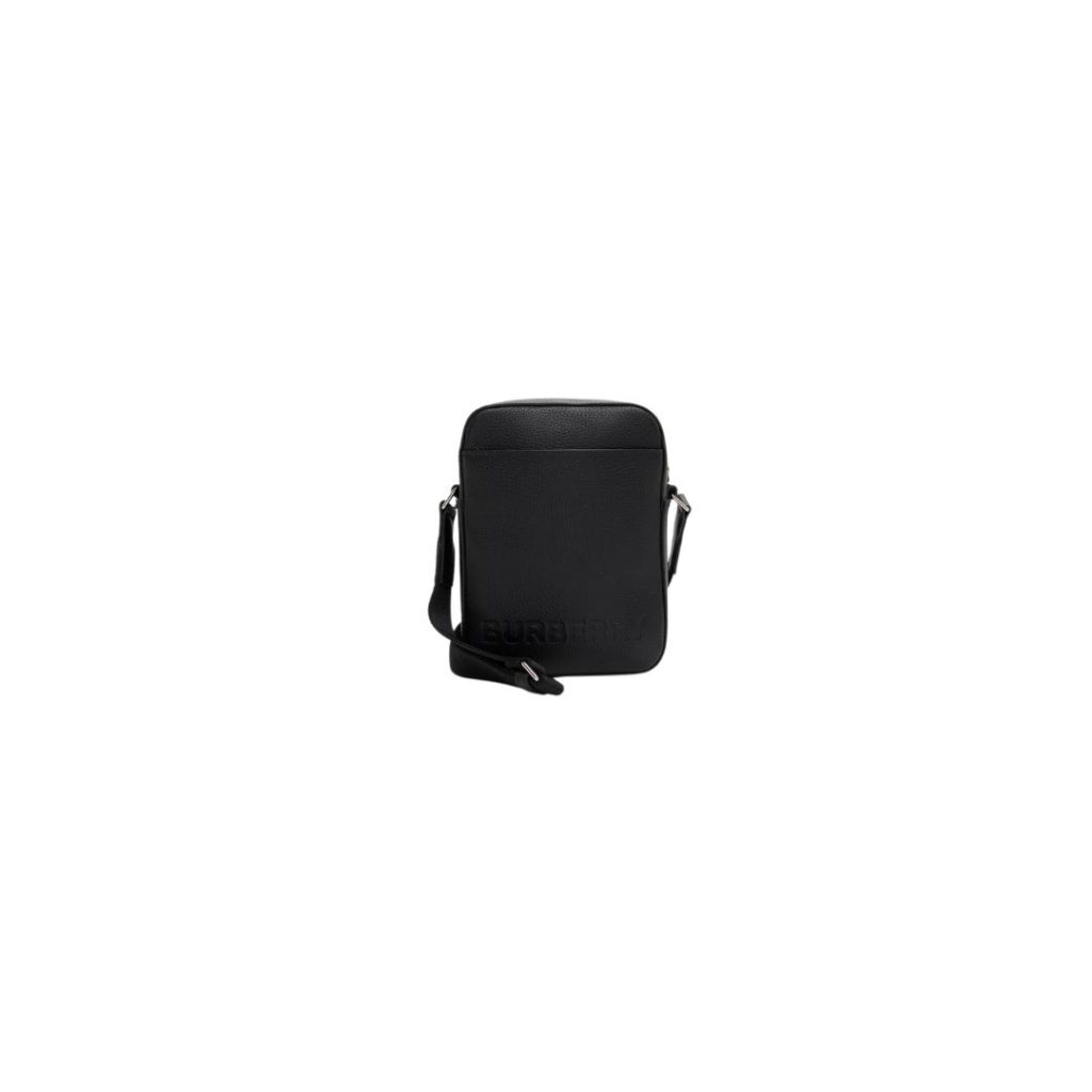 Zip top closure BURBERRY name on bottom front of bag Adjustable black nylon shoulder strap Silver-toned hardware Front slip pocket Measures 8.5″ X 6.5″.