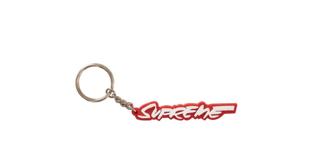 Supreme Futura Logo Keychain, Raised rubber logo keychain with 1″ keyring